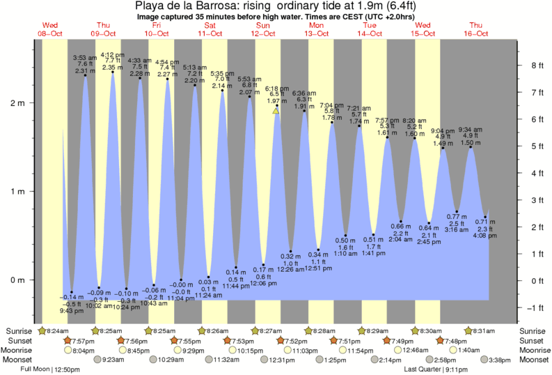 Forecast wind and swell just offshore from Playa de la Barrosa around the time the photo was taken