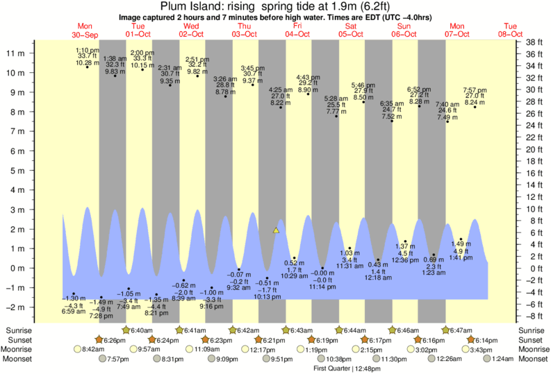 Image captured 2 hours and 7 minutes before high water (rising spring tide). Tide height was 1.9m (6.2 ft). Range 12.07m (39.6 ft). Toggle tide graph