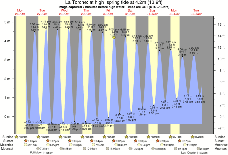 Image captured 7 minutes before high water (at high spring tide). Tide height was 4.2m (13.9 ft). Range 5.19m (17.0 ft). Toggle tide graph
