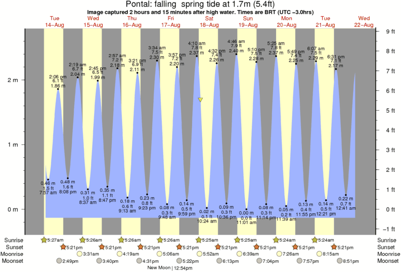 Image captured 2 hours and 15 minutes after high water (falling spring tide). Tide height was 1.7m (5.4 ft). Range 2.66m (8.7 ft). Toggle tide graph