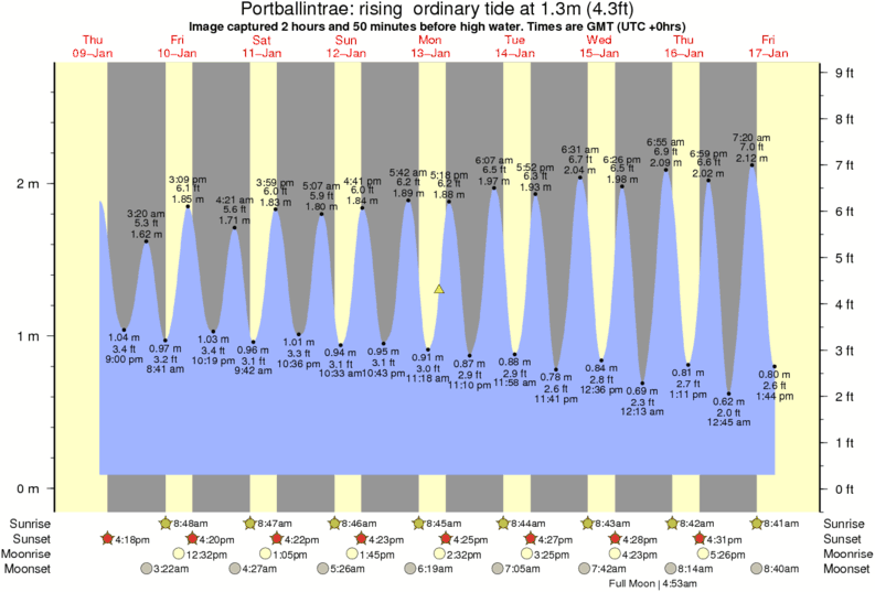 Image captured 2 hours and 50 minutes before high water (rising ordinary tide). Tide height was 1.3m (4.3 ft). Range 2.46m (8.1 ft). Toggle tide graph