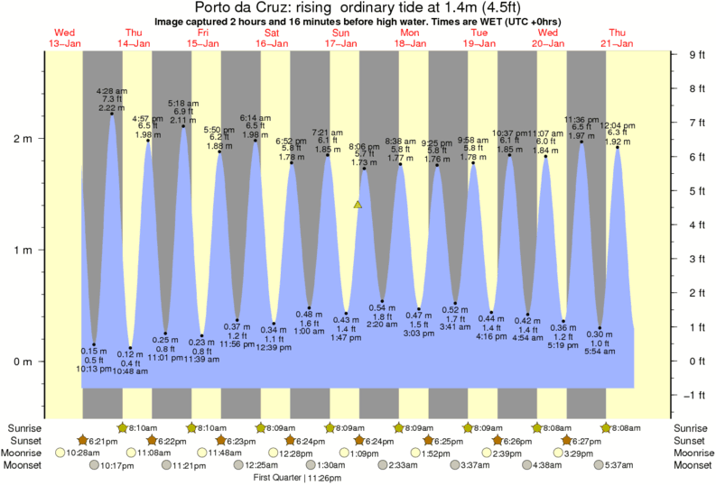 Forecast wind and swell just offshore from Porto da Cruz around the time the photo was taken