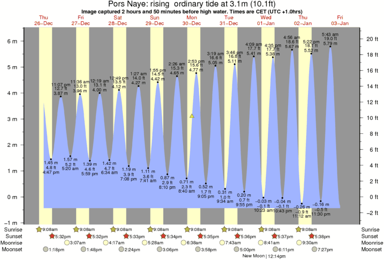 Image captured 2 hours and 50 minutes before high water (rising ordinary tide). Tide height was 3.1m (10.1 ft). Range 6.33m (20.8 ft). Toggle tide graph