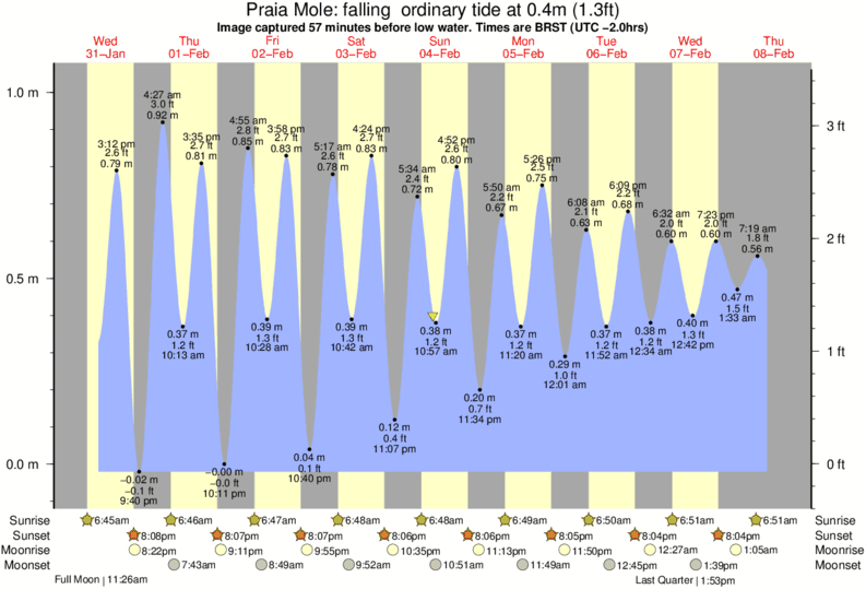 Image captured 56 minutes before low water (falling ordinary tide). Tide height was 0.4m (1.3 ft). Range 1.01m (3.3 ft). Toggle tide graph
