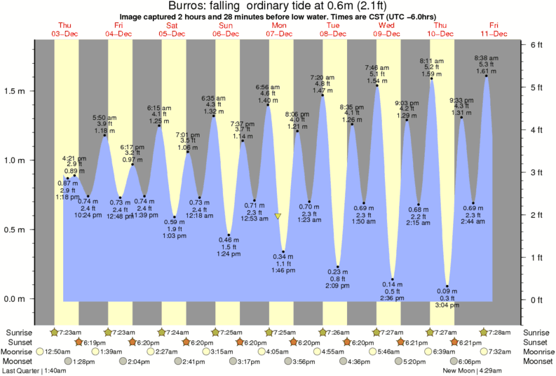 Image captured 2 hours and 28 minutes before low water (falling ordinary tide). Tide height was 0.6m (2.1 ft). Range 1.72m (5.6 ft). Toggle tide graph