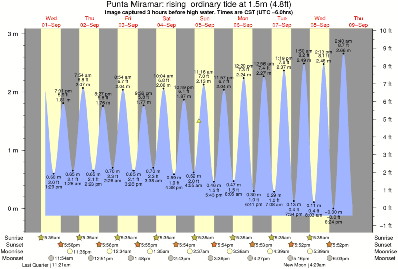 Forecast wind and swell just offshore from Punta Miramar around the time the photo was taken