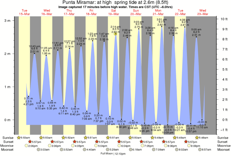 Forecast wind and swell just offshore from Punta Miramar around the time the photo was taken