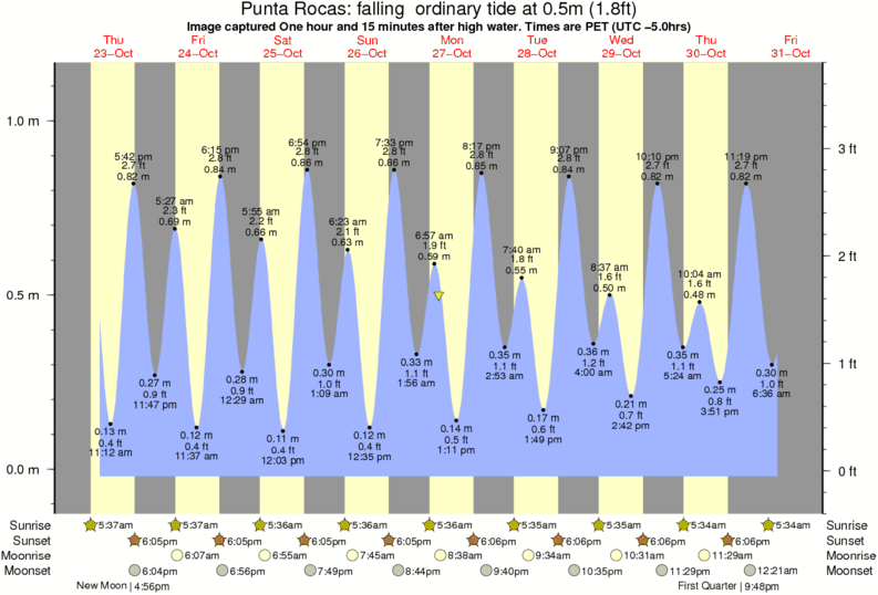 Forecast wind and swell just offshore from Punta Rocas around the time the photo was taken