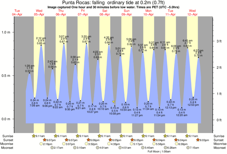 Forecast wind and swell just offshore from Punta Rocas around the time the photo was taken