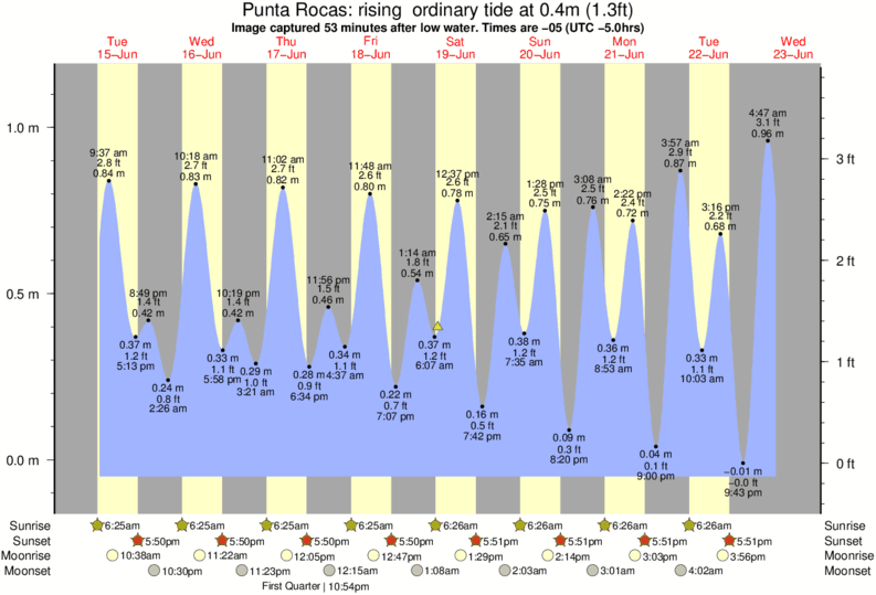 Forecast wind and swell just offshore from Punta Rocas around the time the photo was taken