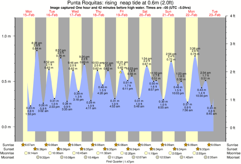 Image captured One hour and 42 minutes before high water (rising neap tide). Tide height was 0.6m (2.0 ft). Range 1.14m (3.7 ft). Toggle tide graph