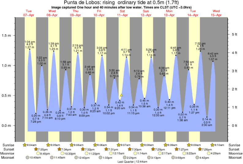 Image captured One hour and 40 minutes after low water (rising ordinary tide). Tide height was 0.5m (1.7 ft). Range 1.73m (5.7 ft). Toggle tide graph
