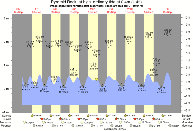 Image captured 9 minutes after high water (at high ordinary tide). Tide height was 0.4m (1.4 ft). Range 3.53m (11.6 ft). Toggle tide graph