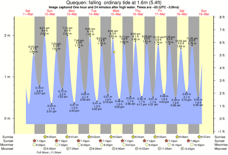 Image captured One hour and 24 minutes after high water (falling ordinary tide). Tide height was 1.6m (5.4 ft). Range 2.36m (7.7 ft). Toggle tide graph
