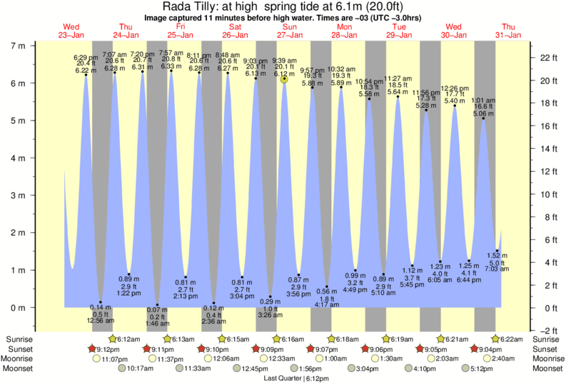 Image captured 11 minutes before high water (at high spring tide). Tide height was 6.1m (20.0 ft). Range 6.48m (21.3 ft). Toggle tide graph