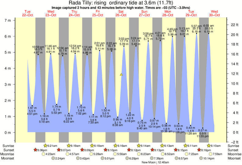 Image captured 2 hours and 43 minutes before high water (rising ordinary tide). Tide height was 3.6m (11.7 ft). Range 6.50m (21.3 ft). Toggle tide graph