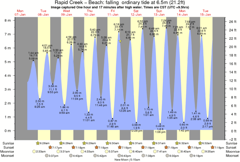 Image captured One hour and 17 minutes after high water (falling ordinary tide). Tide height was 6.5m (21.2 ft). Range 7.44m (24.4 ft). Toggle tide graph