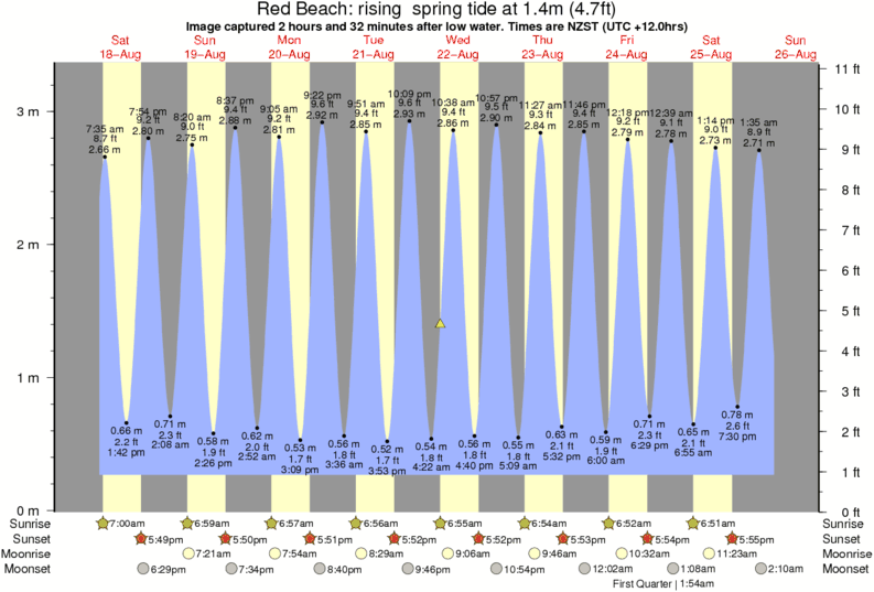Forecast wind and swell just offshore from Red Beach around the time the photo was taken