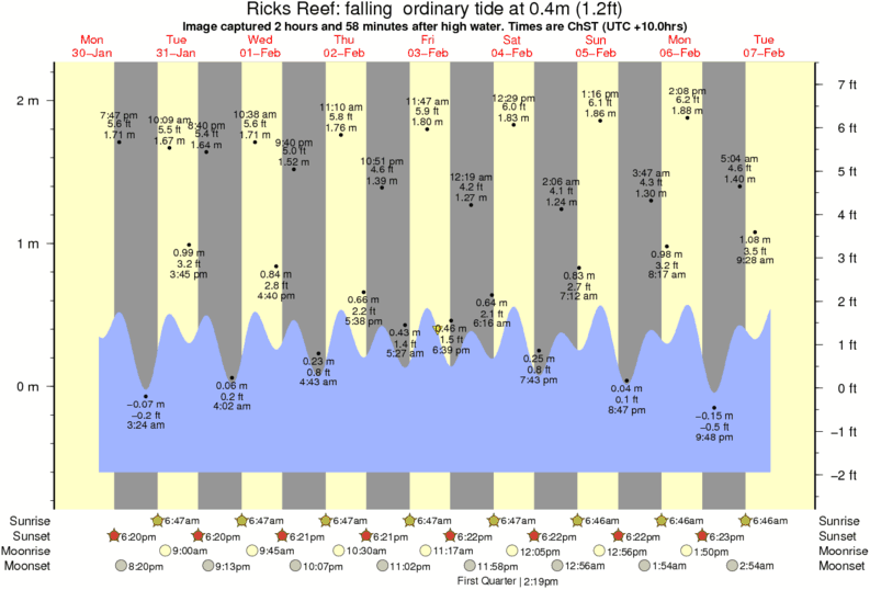 Image captured 2 hours and 58 minutes after high water (falling ordinary tide). Tide height was 0.4m (1.2 ft). Range 2.61m (8.6 ft). Toggle tide graph