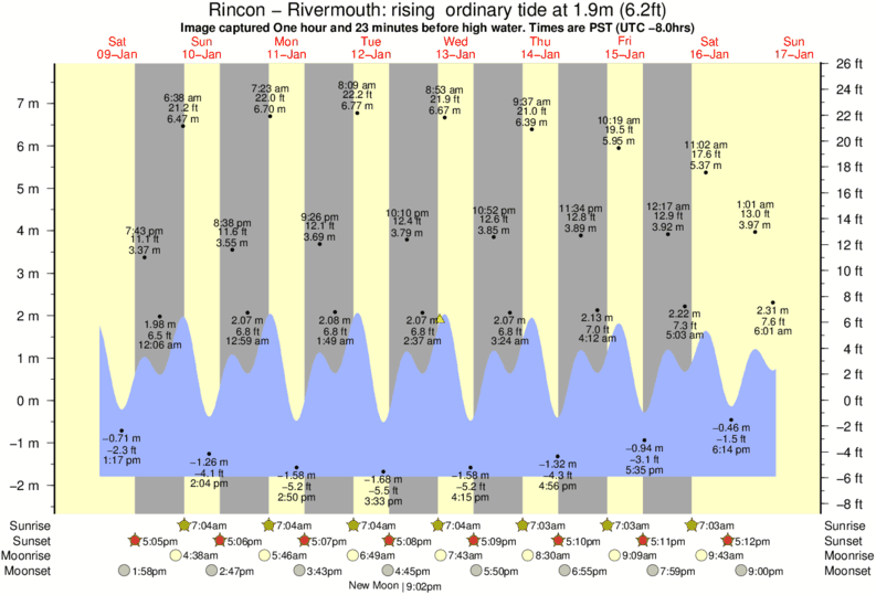 Forecast wind and swell just offshore from Rincon - Rivermouth around the time the photo was taken