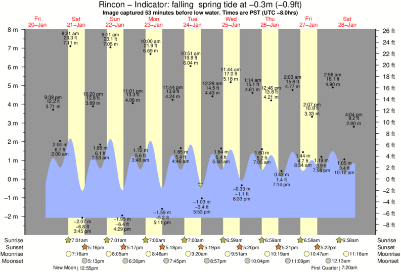 Forecast wind and swell just offshore from Rincon - Indicator around the time the photo was taken