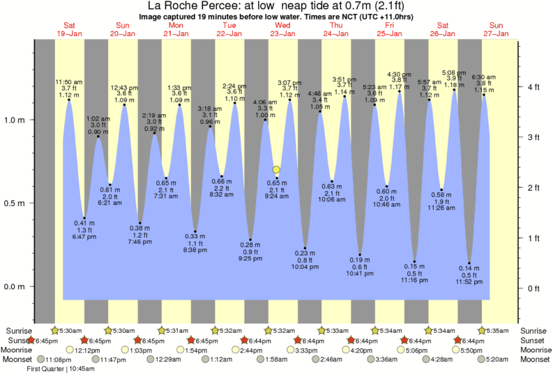 Image captured 19 minutes before low water (at low neap tide). Tide height was 0.7m (2.1 ft). Range 1.42m (4.7 ft). Toggle tide graph