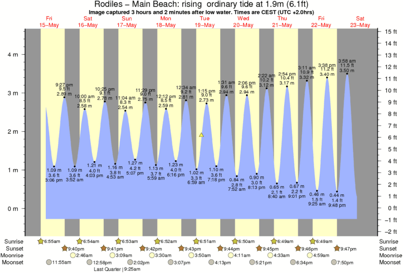 Image captured 3 hours and one minute after low water (rising ordinary tide). Tide height was 1.9m (6.1 ft). Range 4.49m (14.7 ft). Toggle tide graph