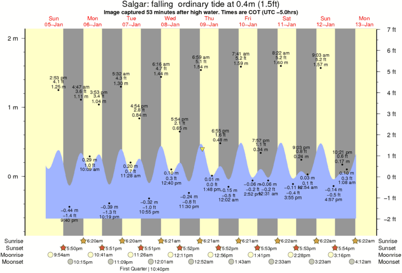Image captured 53 minutes after high water (falling ordinary tide). Tide height was 0.4m (1.5 ft). Range 2.50m (8.2 ft). Toggle tide graph