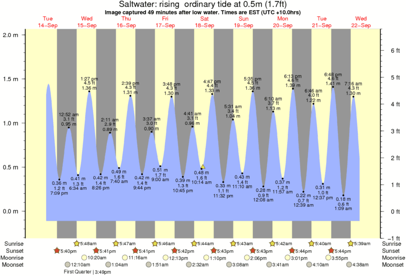 Image captured 49 minutes after low water (rising ordinary tide). Tide height was 0.5m (1.7 ft). Range 1.98m (6.5 ft). Toggle tide graph