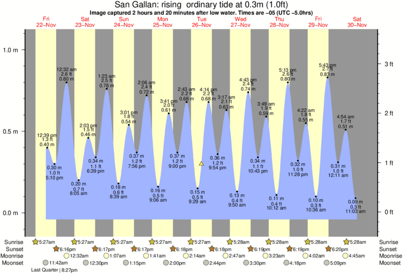 Image captured 2 hours and 20 minutes after low water (rising ordinary tide). Tide height was 0.3m (1.0 ft). Range 1.06m (3.5 ft). Toggle tide graph