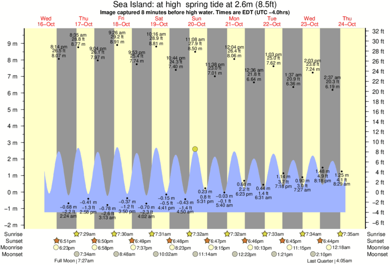 Image captured 8 minutes before high water (at high spring tide). Tide height was 2.6m (8.5 ft). Range 10.13m (33.2 ft). Toggle tide graph