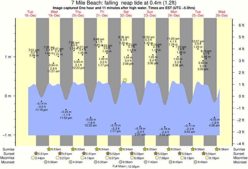 Forecast wind and swell just offshore from 7 Mile Beach around the time the photo was taken