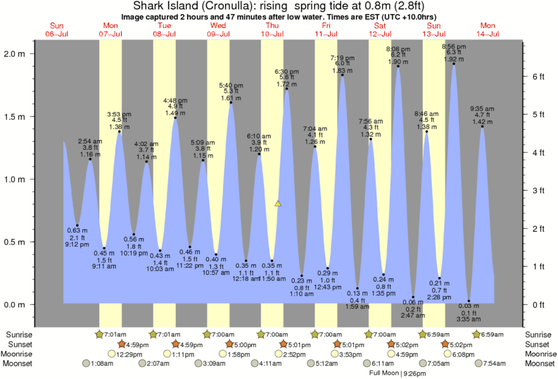 Image captured 2 hours and 47 minutes after low water (rising spring tide). Tide height was 0.8m (2.8 ft). Range 1.91m (6.3 ft). Toggle tide graph