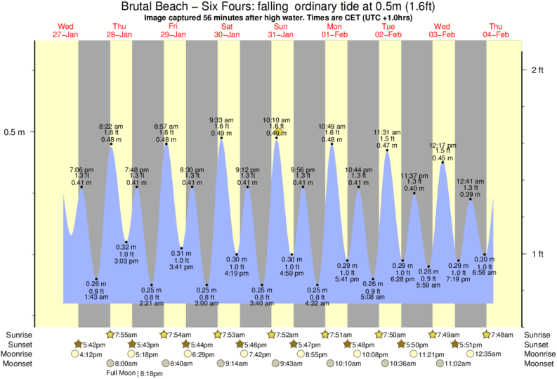 Image captured 56 minutes after high water (falling ordinary tide). Tide height was 0.5m (1.6 ft). Range 0.39m (1.3 ft). Toggle tide graph