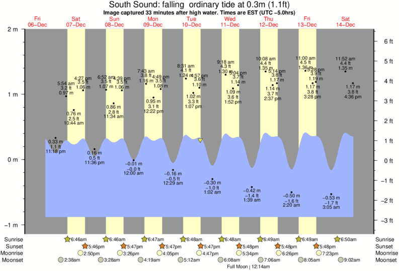 Image captured 33 minutes after high water (falling ordinary tide). Tide height was 0.3m (1.1 ft). Range 2.62m (8.6 ft). Toggle tide graph