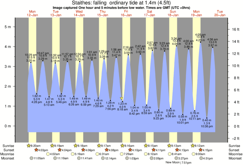 Image captured One hour and 5 minutes before low water (falling ordinary tide). Tide height was 1.4m (4.5 ft). Range 5.25m (17.2 ft). Toggle tide graph