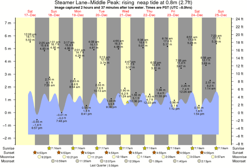 Forecast wind and swell just offshore from Steamer Lane-Middle Peak around the time the photo was taken