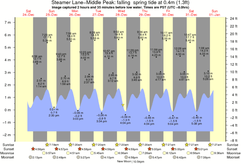 Forecast wind and swell just offshore from Steamer Lane-Middle Peak around the time the photo was taken