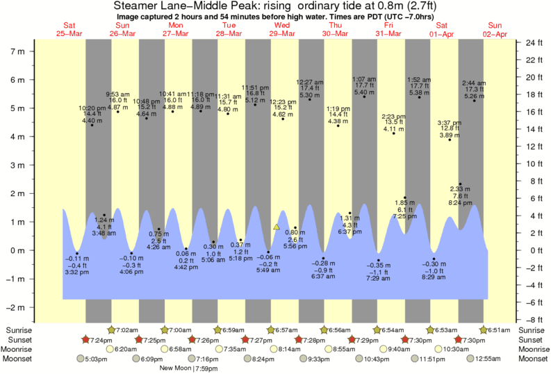 Image captured 2 hours and 54 minutes before high water (rising ordinary tide). Tide height was 0.8m (2.7 ft). Range 8.31m (27.3 ft). Toggle tide graph