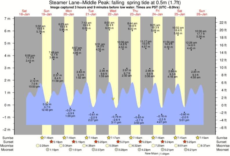 Image captured 3 hours and 9 minutes before low water (falling spring tide). Tide height was 0.5m (1.7 ft). Range 7.98m (26.2 ft). Toggle tide graph