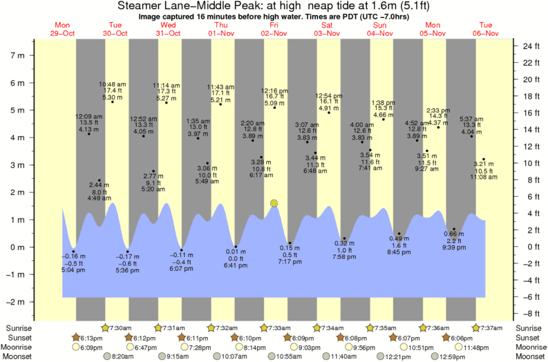Image captured 16 minutes before high water (at high neap tide). Tide height was 1.6m (5.1 ft). Range 8.58m (28.1 ft). Toggle tide graph