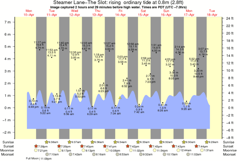 Forecast wind and swell just offshore from Steamer Lane-The Slot around the time the photo was taken