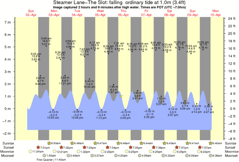 Image captured 2 hours and 9 minutes after high water (falling ordinary tide). Tide height was 1.0m (3.4 ft). Range 8.31m (27.3 ft). Toggle tide graph