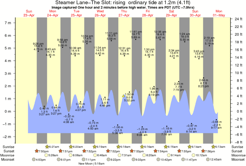 Forecast wind and swell just offshore from Steamer Lane-The Slot around the time the photo was taken