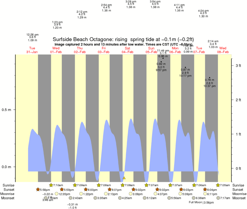 Image captured 2 hours and 13 minutes after low water (rising spring tide). Tide height was -0.1m (-0.2 ft). Range 0.93m (3.1 ft). Toggle tide graph