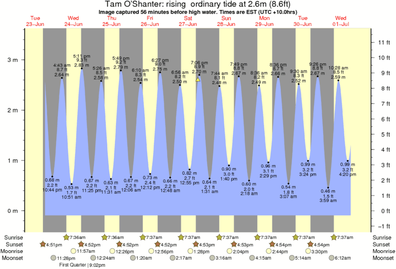 Image captured 56 minutes before high water (rising ordinary tide). Tide height was 2.6m (8.6 ft). Range 3.38m (11.1 ft). Toggle tide graph