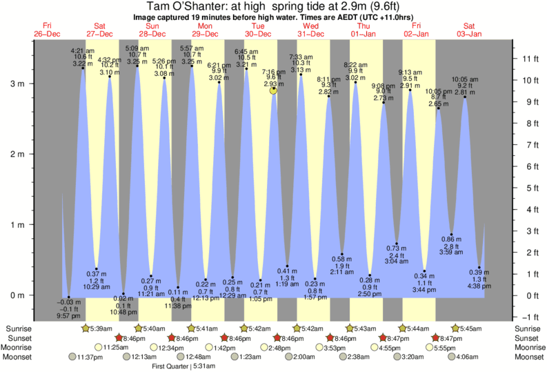 Image captured 19 minutes before high water (at high spring tide). Tide height was 2.9m (9.6 ft). Range 3.33m (10.9 ft). Toggle tide graph