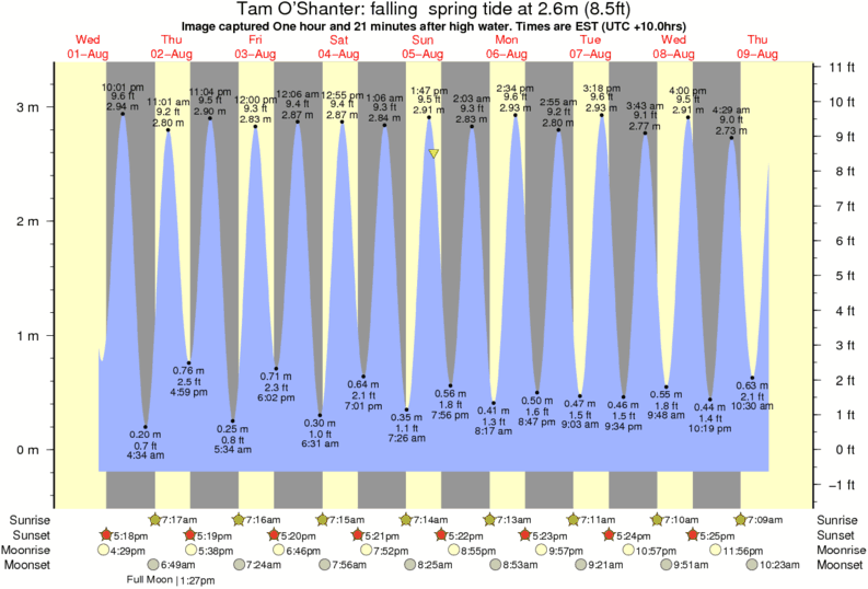 Image captured One hour and 21 minutes after high water (falling spring tide). Tide height was 2.6m (8.5 ft). Range 3.26m (10.7 ft). Toggle tide graph
