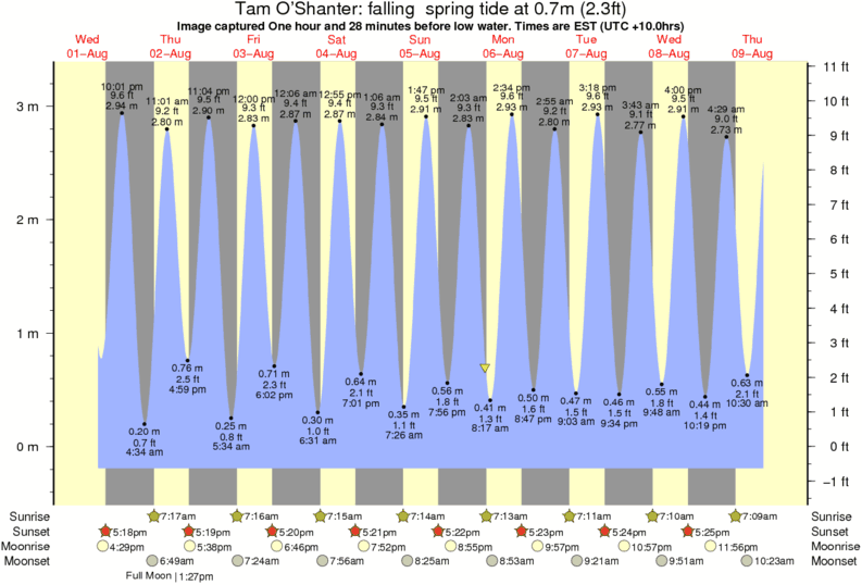 Image captured One hour and 28 minutes before low water (falling spring tide). Tide height was 0.7m (2.3 ft). Range 3.26m (10.7 ft). Toggle tide graph