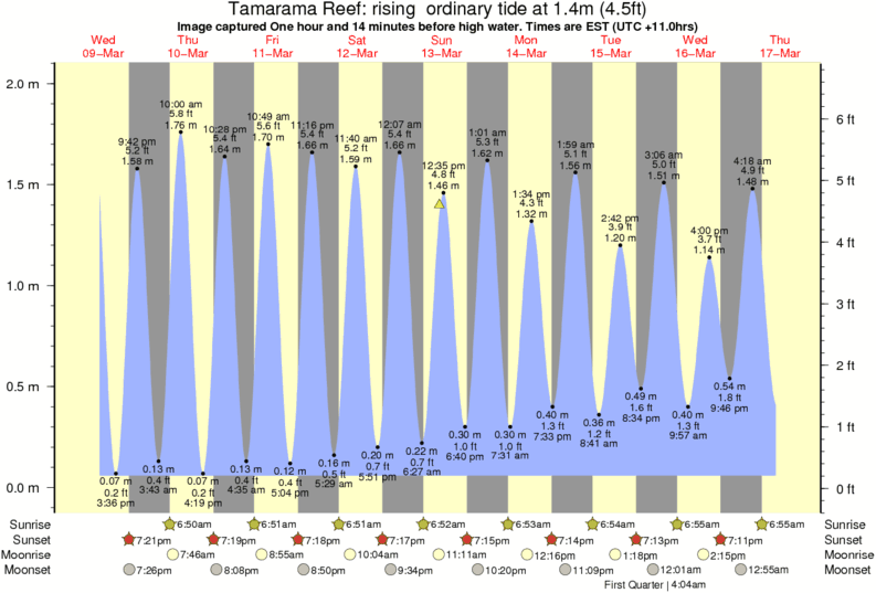 Image captured One hour and 14 minutes before high water (rising ordinary tide). Tide height was 1.4m (4.5 ft). Range 1.86m (6.1 ft). Toggle tide graph